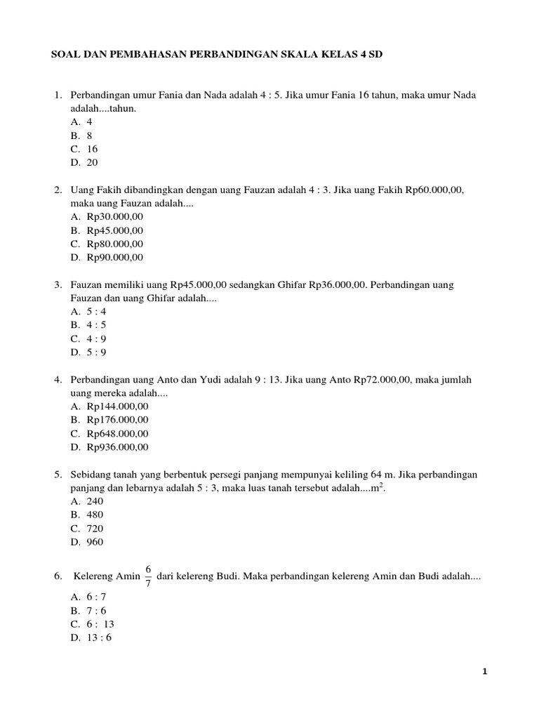 Sebelumnya kita telah mengetahui pengertian perbandingan dan juga mengerjakan soal soal latihannya. Soal matematika skala kelas 5 semester 2. Kelereng biru adalah 2 : Sebuah miniatur bangunan memiliki tinggi 20 cm. Topik matematika sd kelas 6: